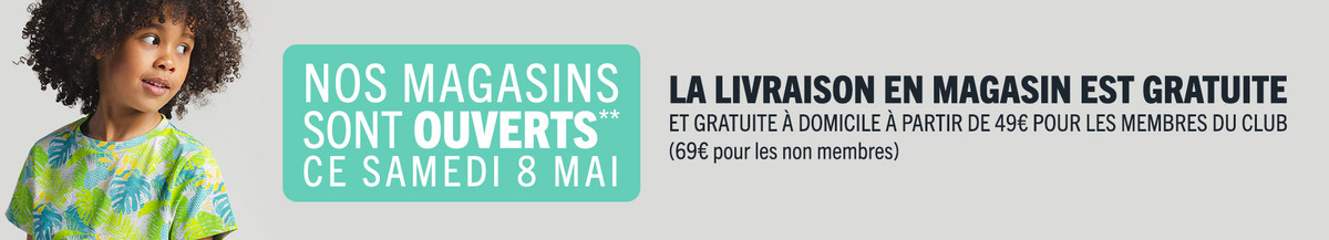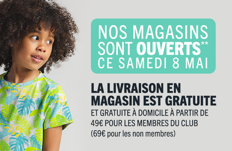 Bénéficiez toute l’année de -50% sur les vêtements, -30% sur les chaussures, jusqu’à -20% sur la puériculture ainsi que de super services.