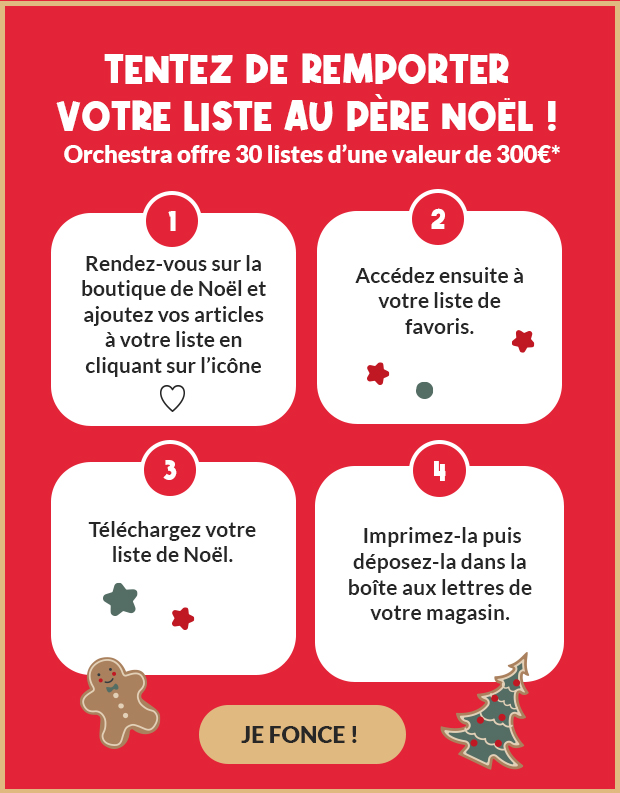 Je joueDu 24 septembre au 15 octobre rendez-vous, chaque mercredi, dans votre magasin Orchestra participant le plus proche.