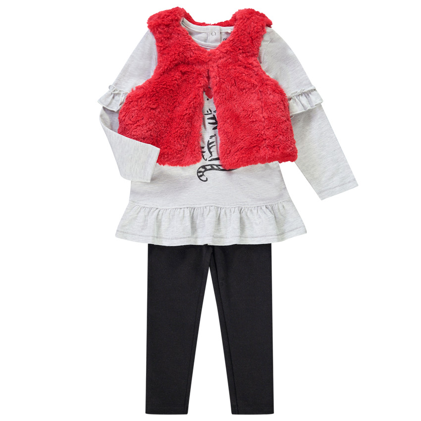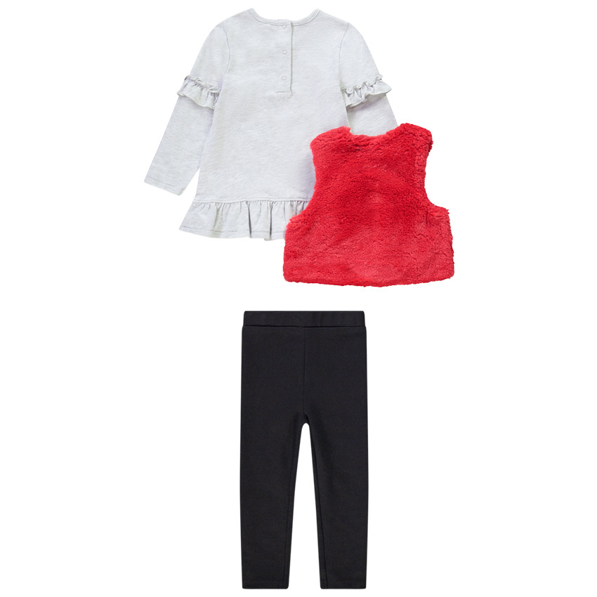 Ensemble 3 pièces gilet sans manches + tunique print chat + caleçon pour bébé fille