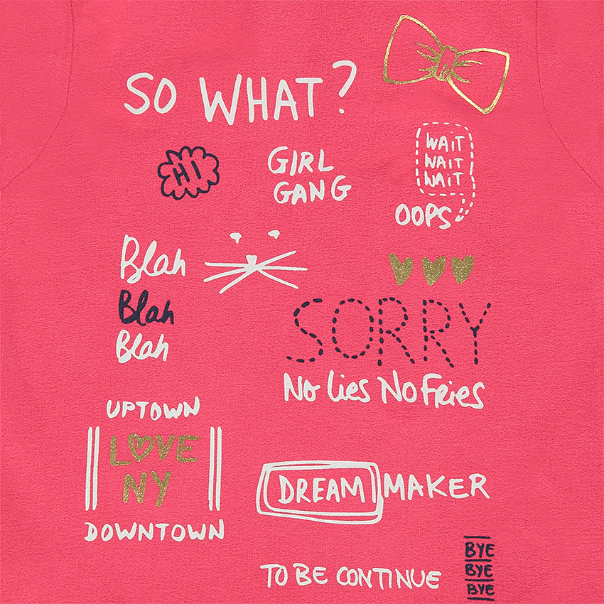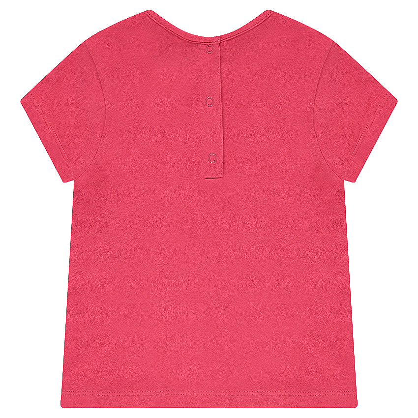 Tee-shirt manches courtes en coton organique. Encolure ronde en bord-cÎte. Prints fantaisie sur le devant. Ouverture boutonnée au dos.