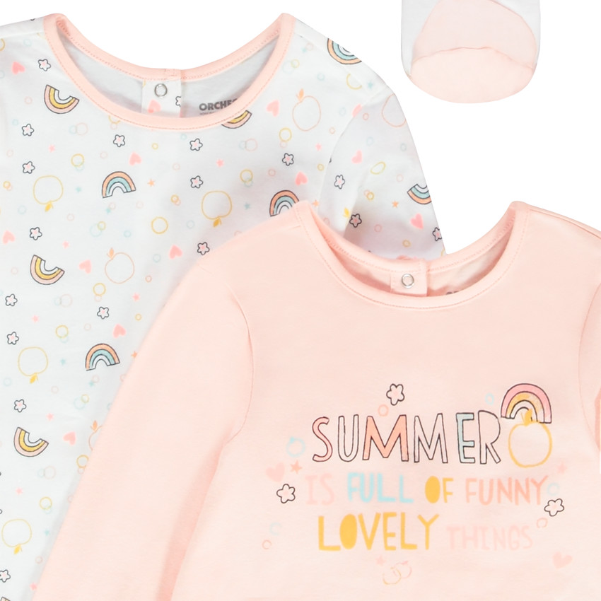 Lot de 4 dors-bien en jersey. Encolure ronde en bord côte. Manches longues. Ouverture pressionnée à pont dans le dos. Pieds fermés.