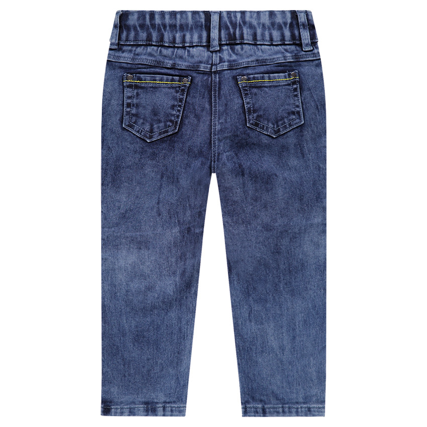 Pantacourt en jeans effet used. Taille ajustable de l'intérieur par élastique et boutons. Ceinture à passants avec bouton et braguette zippée. 2 poches cavalières et 1 poche ticket devant. Badges brodés sur les jambes. 2 poches plaquées au dos.