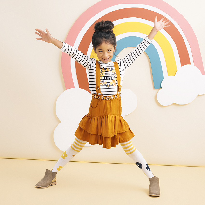 Jupe volantée à bretelles ajustables et frise brodée
