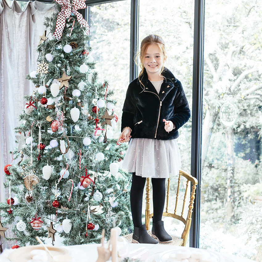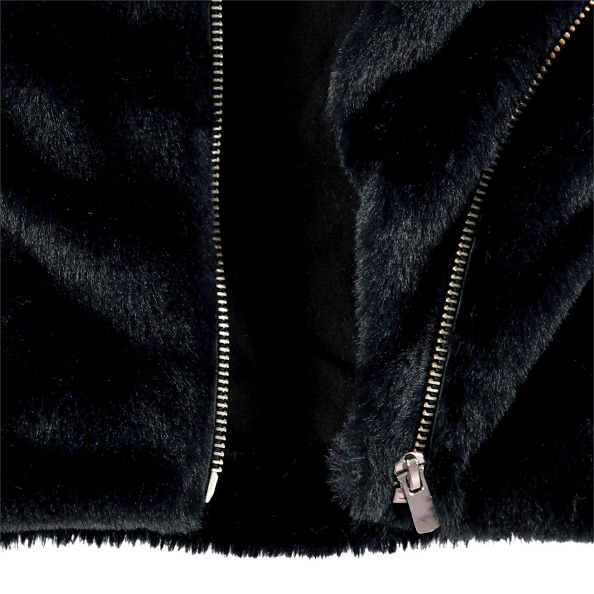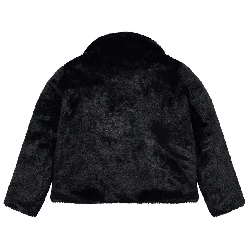 Veste en sherpa. Large col cranté avec étoiles brillantes. Doublure en sherpa. Ouverture zippée asymétrique. 2 poches zippées devant. Dos uni.