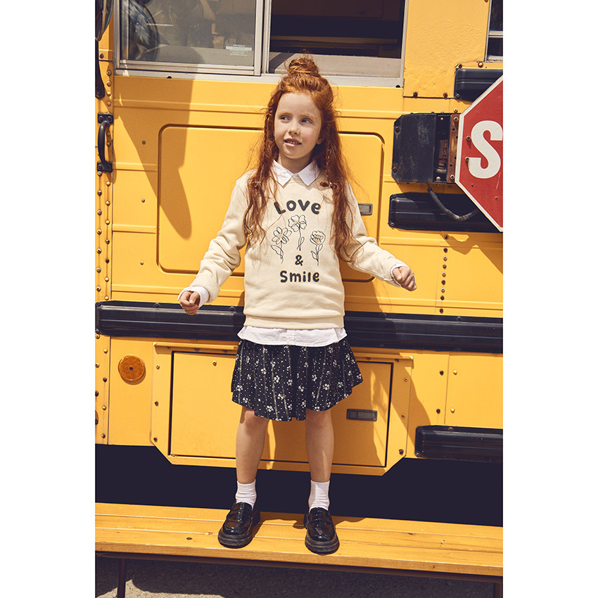 Sweat en molleton. Encolure ronde en bord cÎte. Manches longues et base en bord cÎte. Print sur le devant avec détails glitter. Couleur unie.