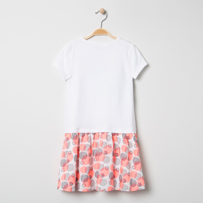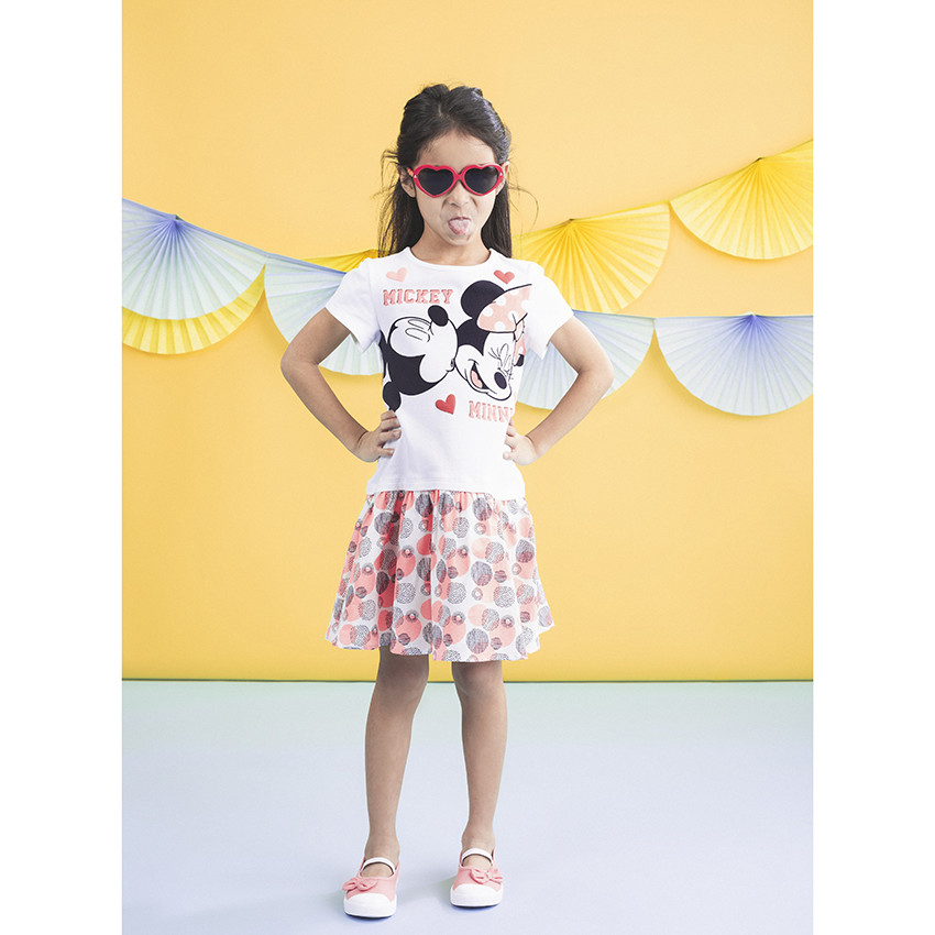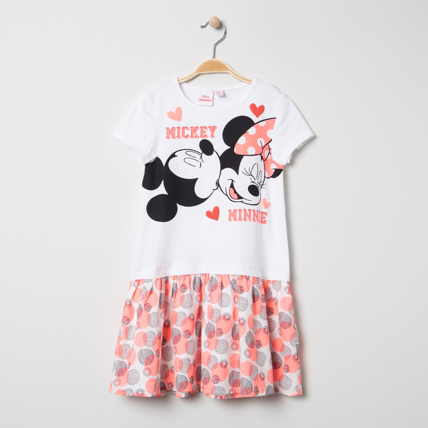 Robe manches courtes effet 2 en 1. Encolure ronde en bord-côte. Mickey et Minnie printés devant. Bas de la robe imprimé. Doublure intégrée.