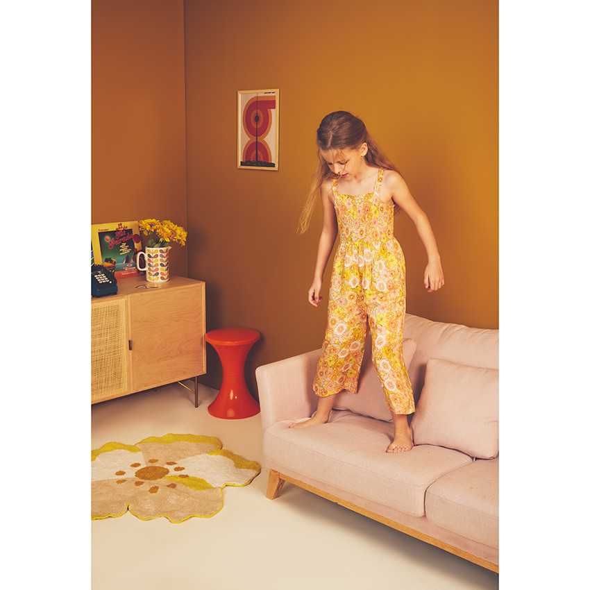 Combinaison longue à smocks imprimé fleurs retro pour fille