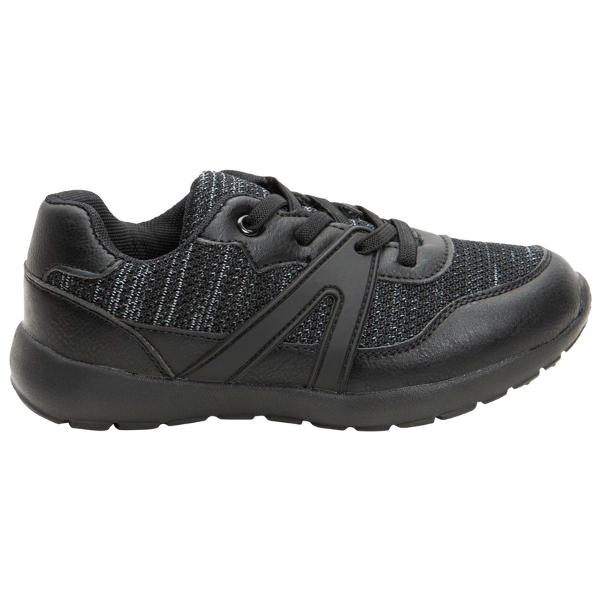 Baskets unies en mesh. Ouverture devant par lacets élastiqués. Empiècements effet cuir. Semelle épaisse souple. Bourrelet de renfort au col.