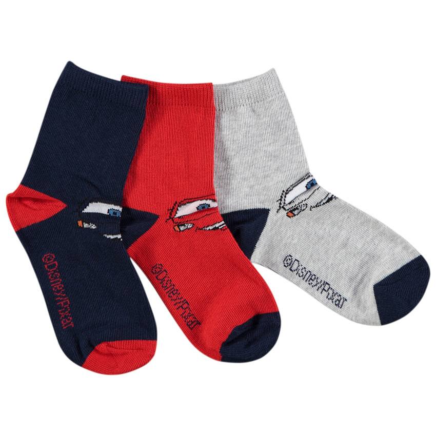 Lot de 3 paires de chaussettes. Cheville en bord-côte élastiqué.Print Cars sur le devant. Marque sous le pied. Orteils et talons contrastés. Coloris et motifs différents selon le modèle.