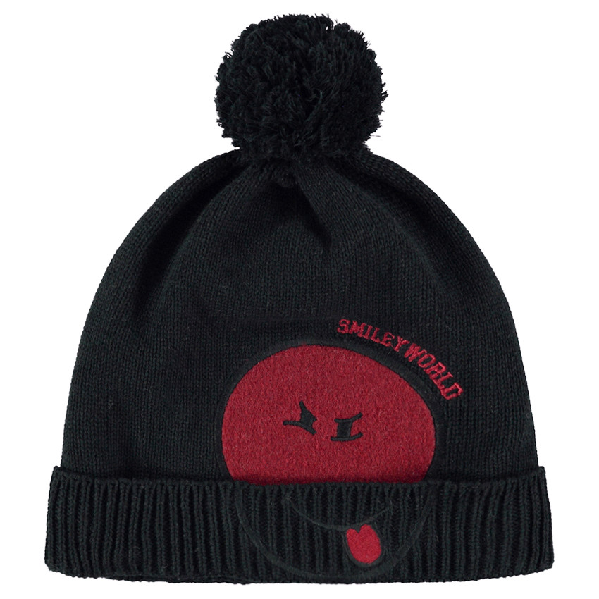 Bonnet en tricot avec pompon et patch Smiley en feutrine