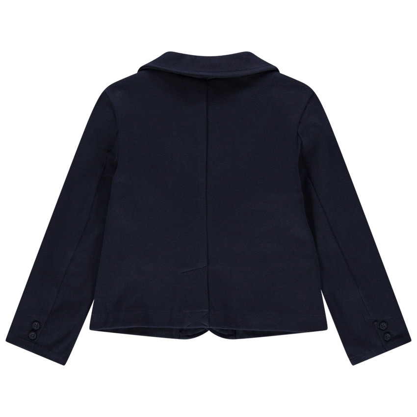Blazer en maille. Doublure en chambray. Col cranté. Ouverture boutonnée devant. 2 poches passepoilées devant. Poignets boutonnés.
