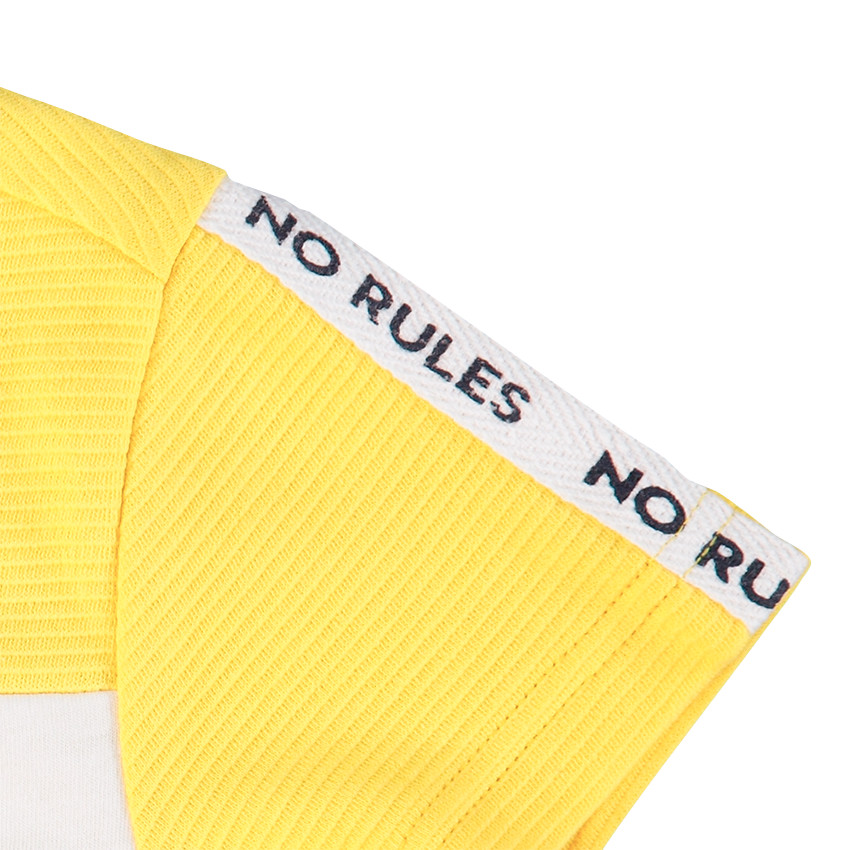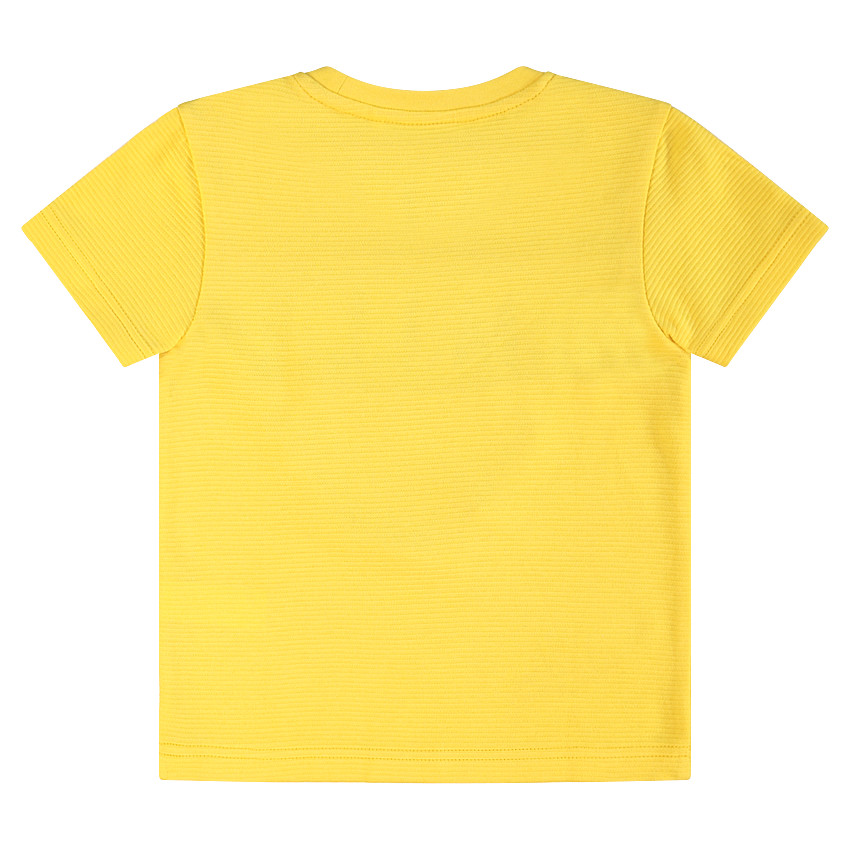 Tee-shirt manches courtes effet ottoman pour enfant garçon. Encolure ronde en bord-côte. Bandes appliquées sur les manches. Inscription et Smiley printés sur le devant.