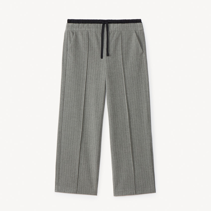 Pantalon en toile avec ceinture rayée à double boucles pour garçon