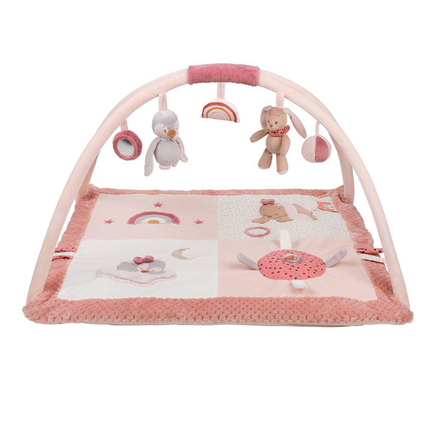 Le tapis d'éveil avec arches de Nattou invite votre bébé à éveiller sa curiosité et à développer sa motricité par l'exploration de différents jeux : hochet, papier crissant, miroir. Doux et confortable,