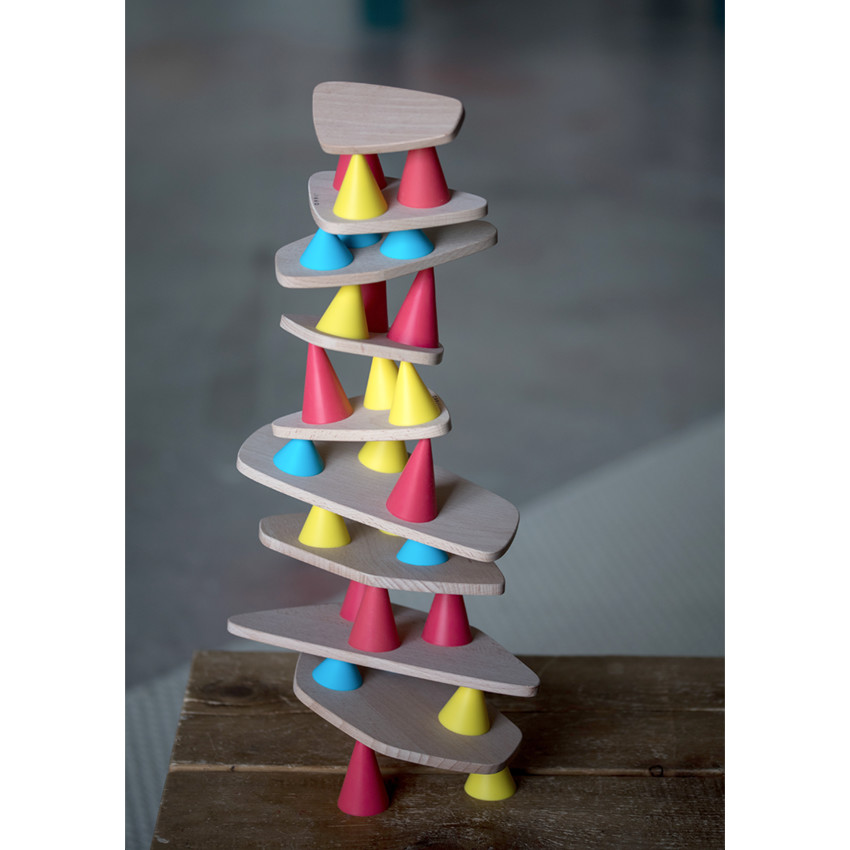 - Un jeu Ă©co-responsable : Les cĂŽnes sont en silicone non-toxique et le bois est issu de forĂȘts Ă©co-gĂ©rĂ©es FSC, parce que proposer un jeu rigolo et responsable câest encore mieux