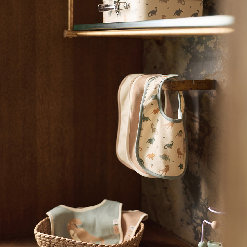 Chaque modÚle est unique, décoré des jolis motifs dinos de la collection Roarsome. Leur surface en jersey évitera au lait et à tout autre liquide de tùcher les habits de bébé.